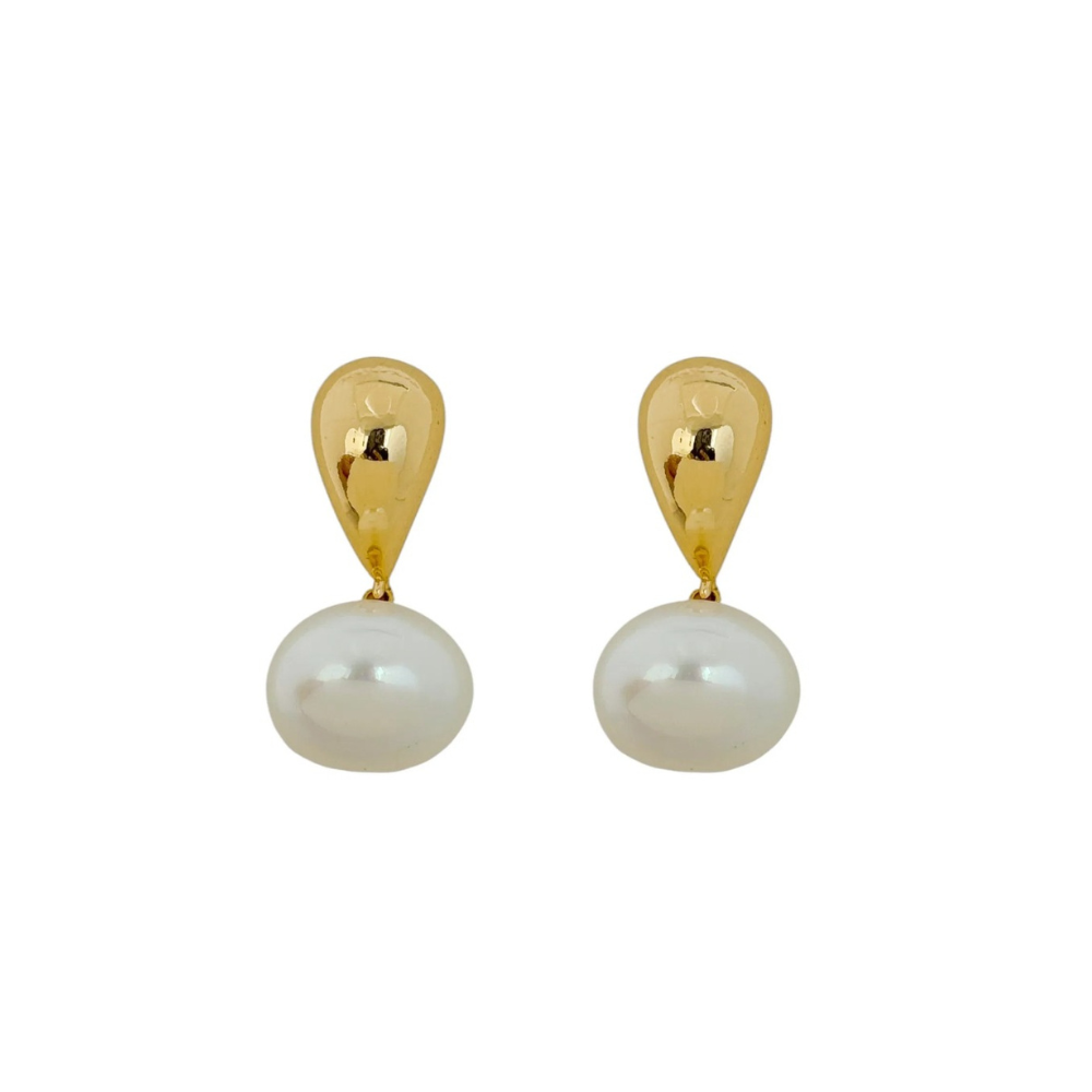 Brinco gota folheado a ouro 18k com pérola